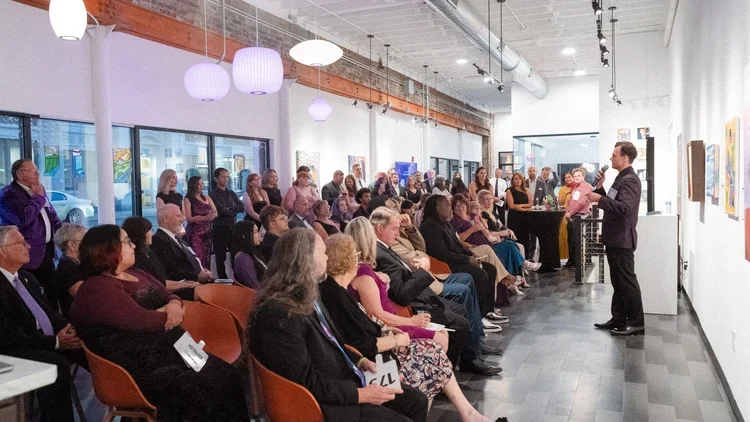 Just as it was last year, the second annual MAC Gala was a special night of art, elegance, appreciation, and generosity. Decked out in hues of purple, guests, artists, community leaders, and everyone in between filled the gallery. Attendees bid on art in both silent and live auction, entered into a live painting raffle, enjoyed delicious hors d'oeuvres from the Tomahawk, and socialized well into the evening.