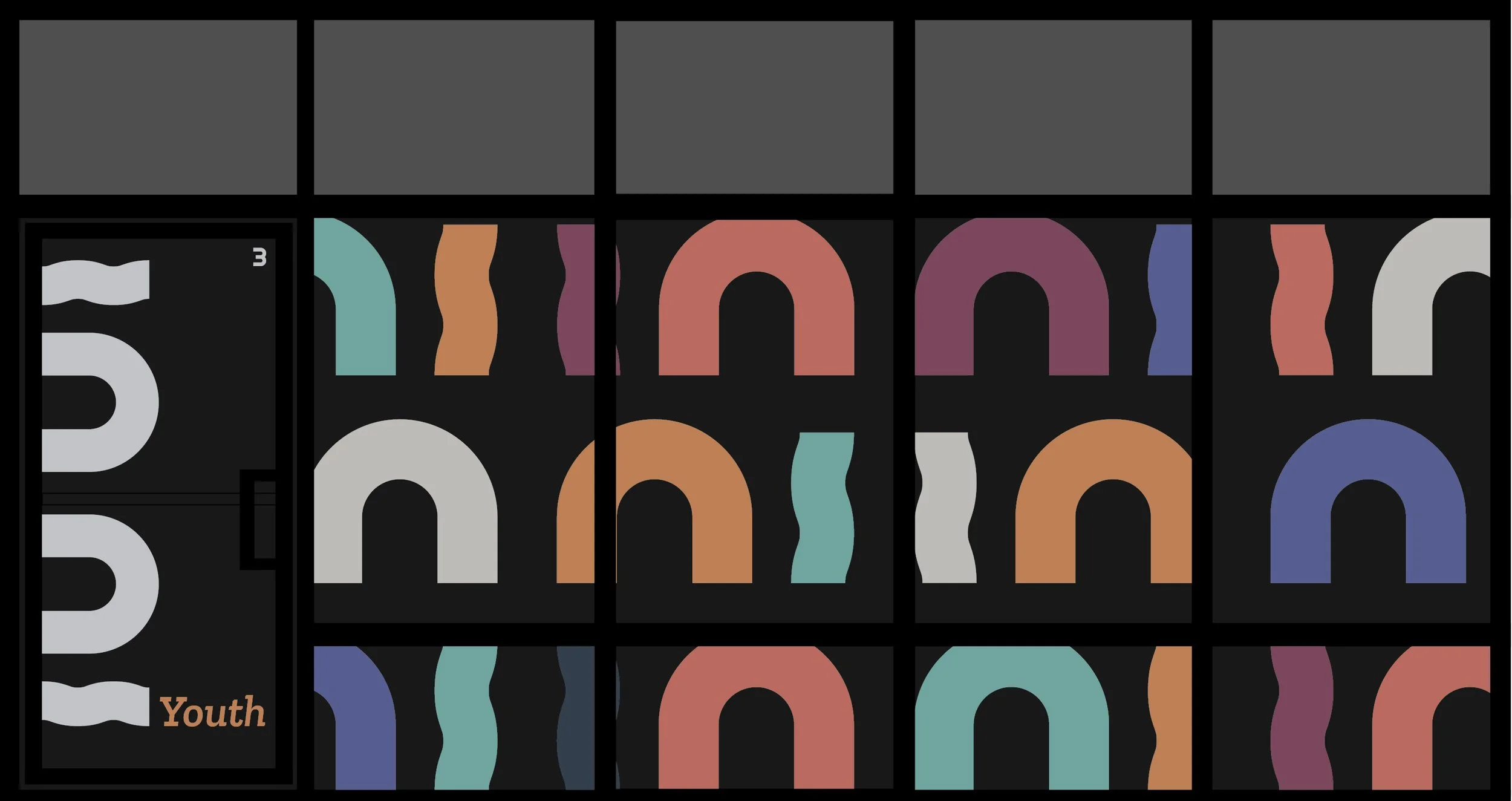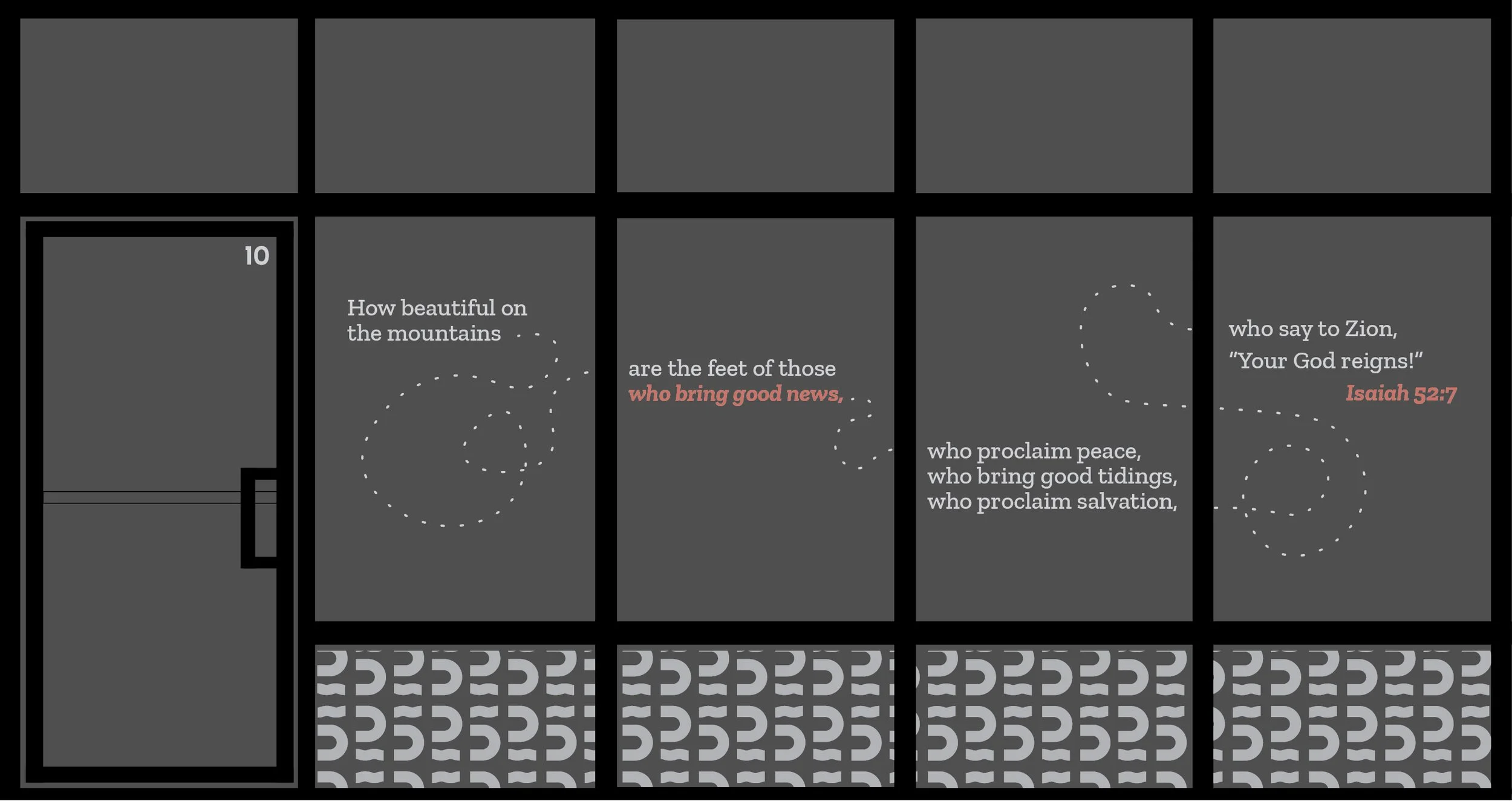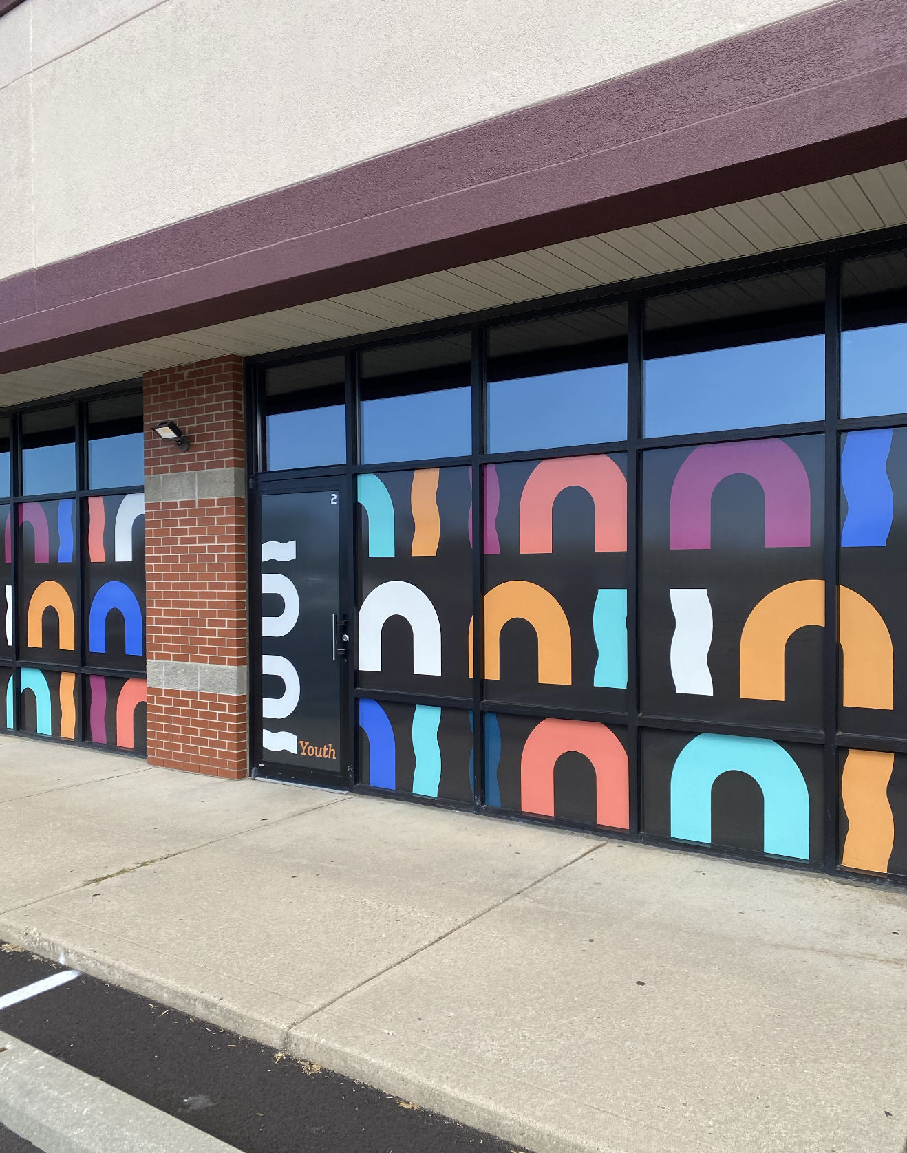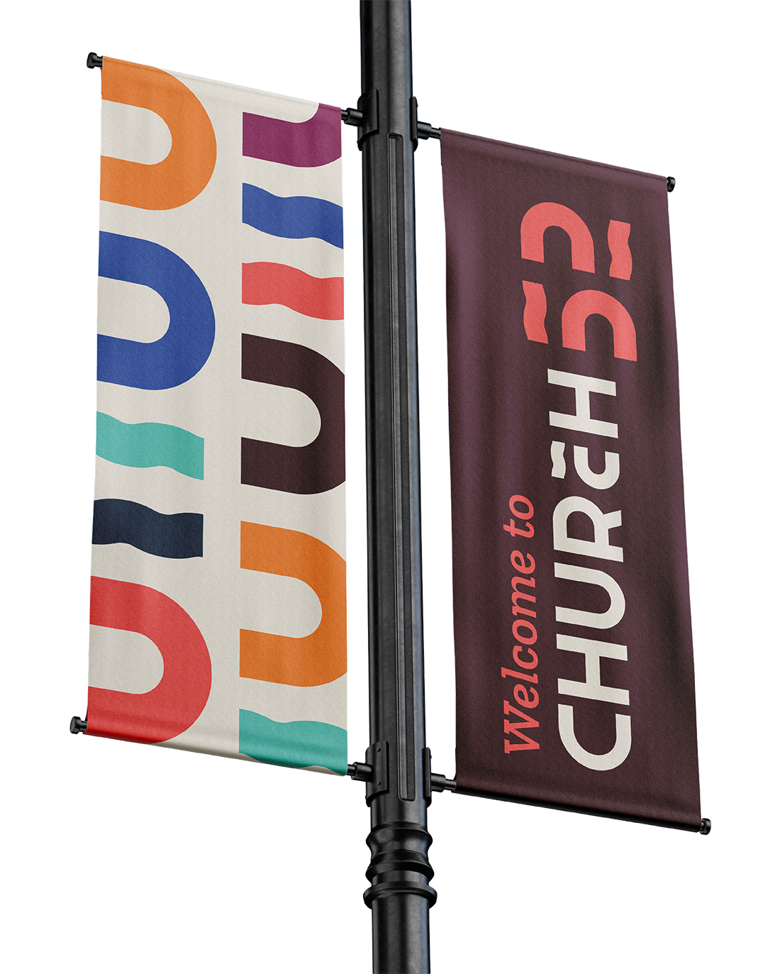 The final identity presents Church 52 as a church expectant—rooted in the Spirit’s leading and energized by its calling to share good news. The custom typography carries layered meaning, with flowing lines above the “C” and within the numbers 5 and 2 referencing the tongues of fire at Pentecost and a flag lifted in the wind, echoing Isaiah 52. These same forms suggest movement, worship, and proclamation. The number 2 can also be interpreted as a figure kneeling in worship, while the pairing of 5 and 2 recalls the miracle of the loaves and fish—an image of multiplication that mirrors Church 52’s vision for expanding impact and outreach. To ensure flexibility, Marion Design Co. developed four logo variations alongside supporting icons, secondary marks, and patterns. A bold color palette anchors the system, with red and burgundy expressing passion and spiritual energy, balanced by cooler secondary tones that convey welcome and calm guidance. The brand was applied across digital and print materials and extended into interior and exterior wayfinding and facade design, helping establish Church 52’s building as a permanent, recognizable home for its growing community.