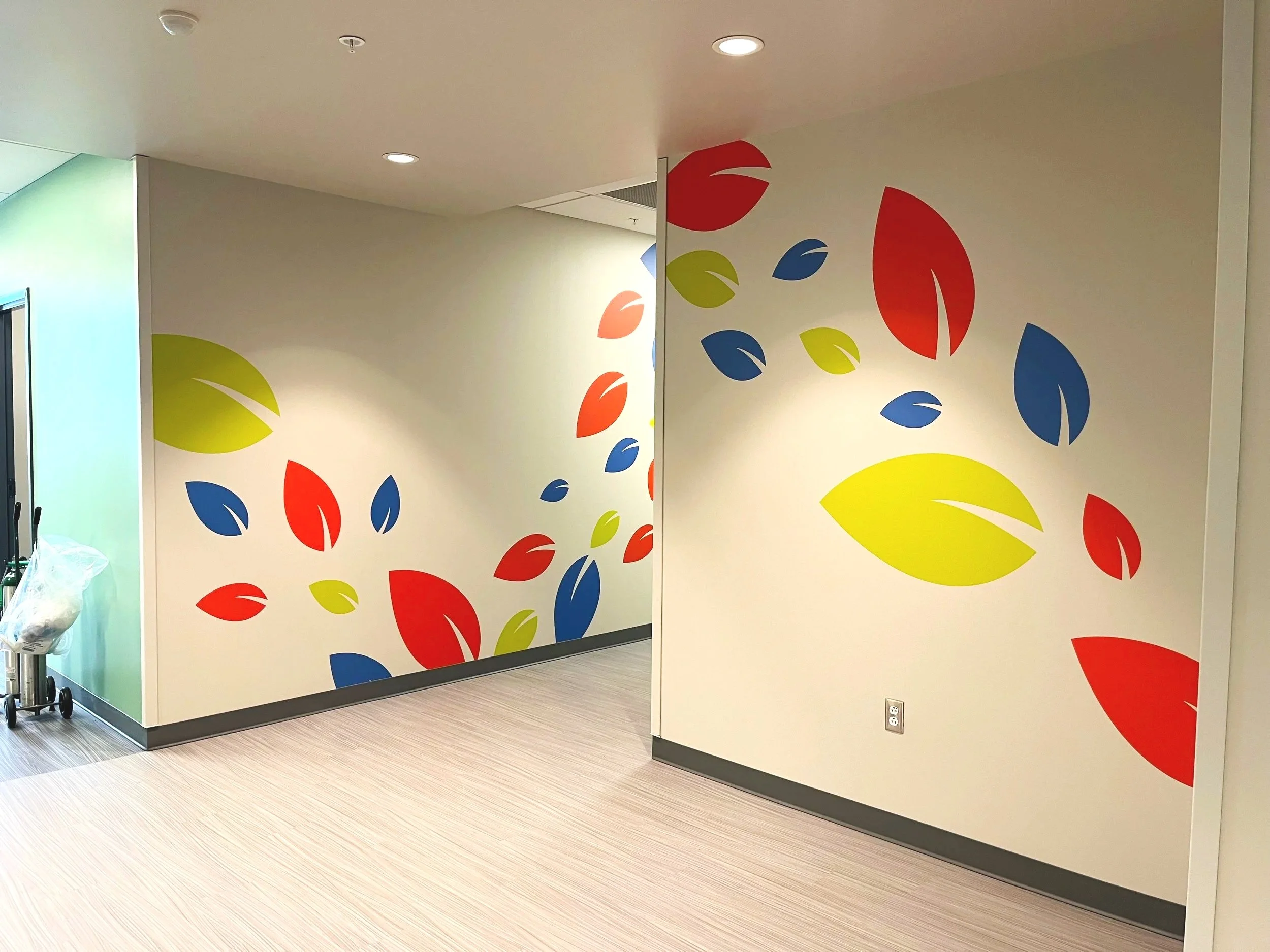 The final murals are representative of the original objectives: to be visible, welcoming, and energetic. As the leaves travel across the windows and walls, they tell a story of unity, care, and intentionality. Nature carries a meaningful narrative of growth and interconnectedness. Multiple leaves on a vine need each other to thrive, which reflects the network of locations that IHC holds.