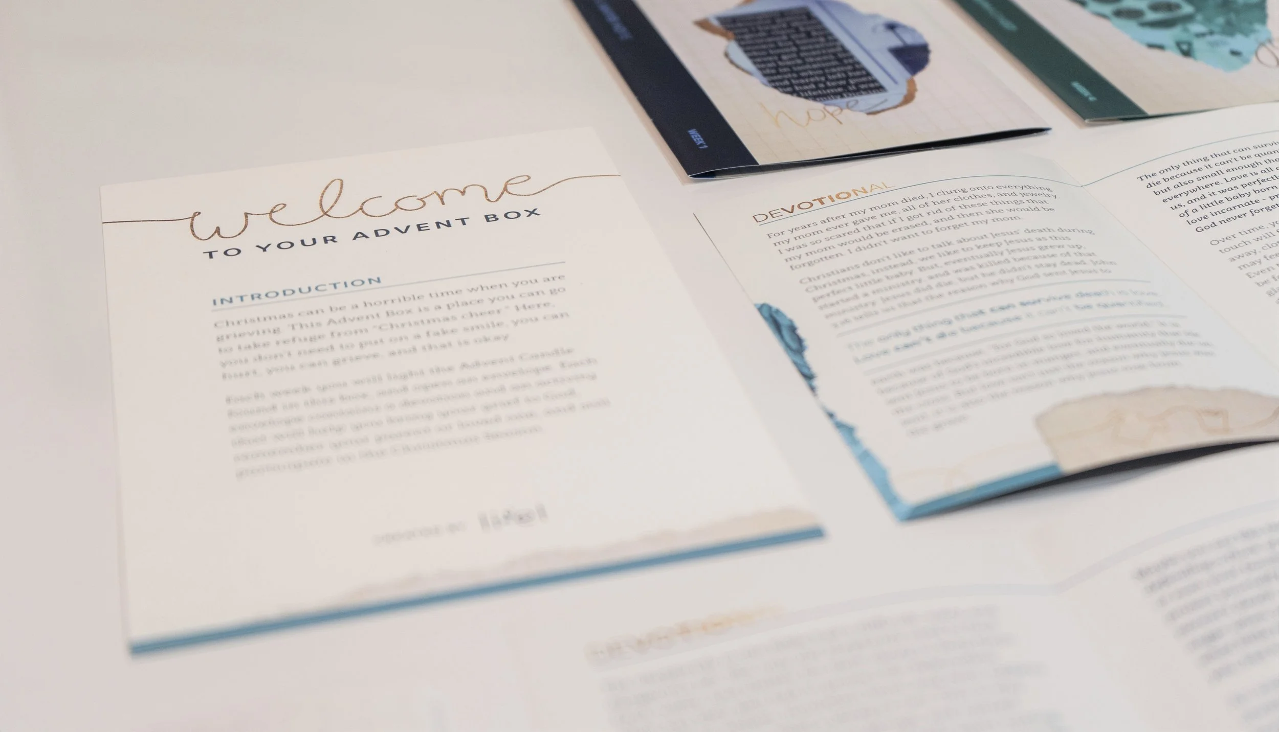 In April 2022, Marion Design Co. embarked on a project to help bring to life Kalina Carlson’s vision of an advent box oriented toward teenagers who are processing grief during the Christmas season. Building off of Carlson’s ideas, we created a name and brand identity for the project.