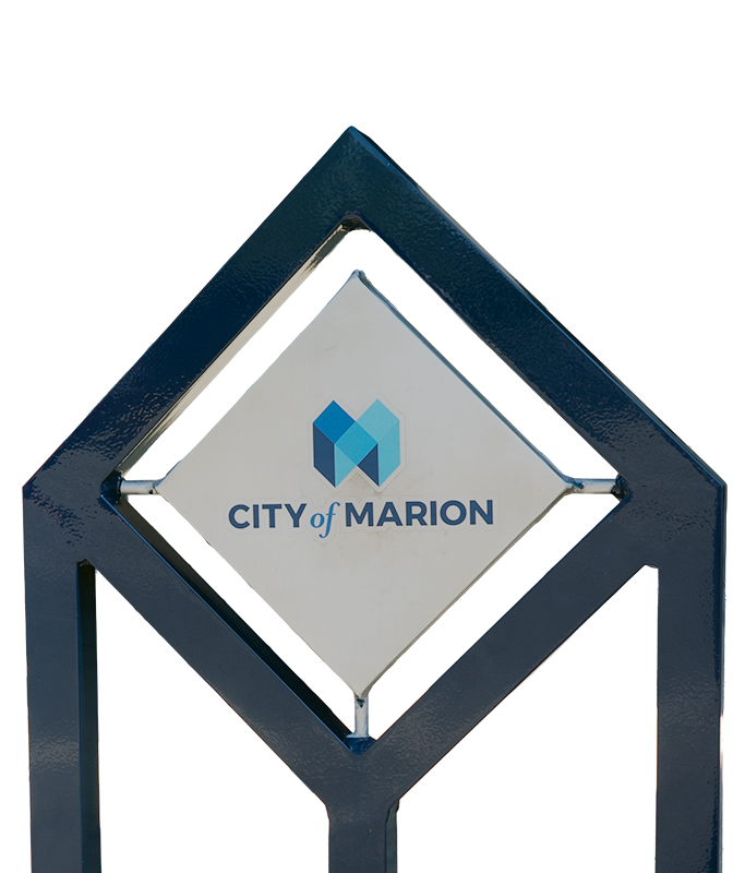 By building on the city’s logo, the bike racks are designed to reinforce a sense of common identity and pride in Marion’s downtown.