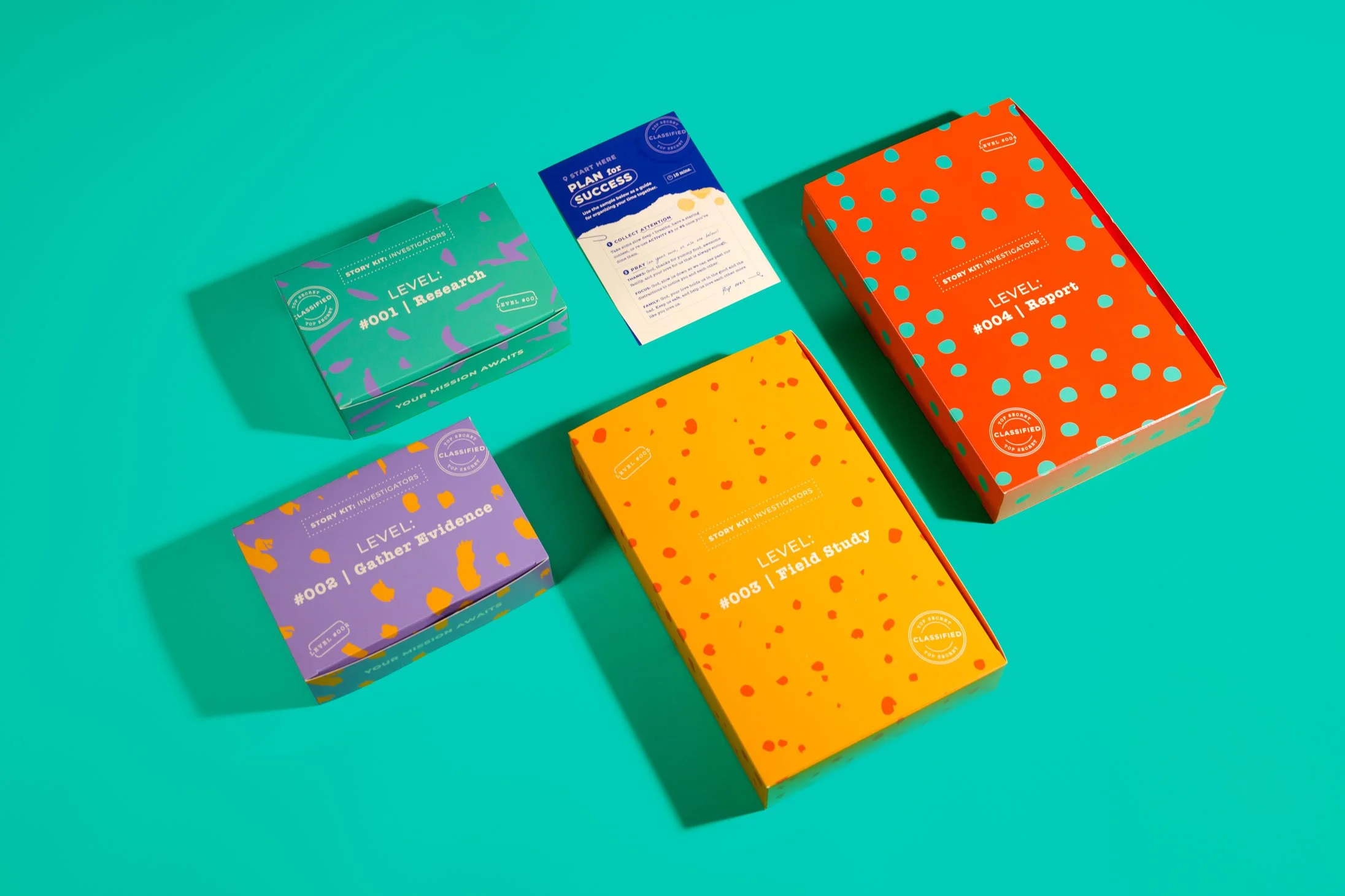 Our research was thorough and multifaceted. We examined existing family kits, conducted Bible character studies, and researched investigative-themed visuals to align with the kit’s “investigator” theme. We analyzed instruction manuals, user experiences, and target audience demographics to ensure the kit would be accessible, fun for kids, and meaningful for adults. We also thoroughly vetted production methods, vendors, and price points to design a scalable and affordable solution for families and churches.